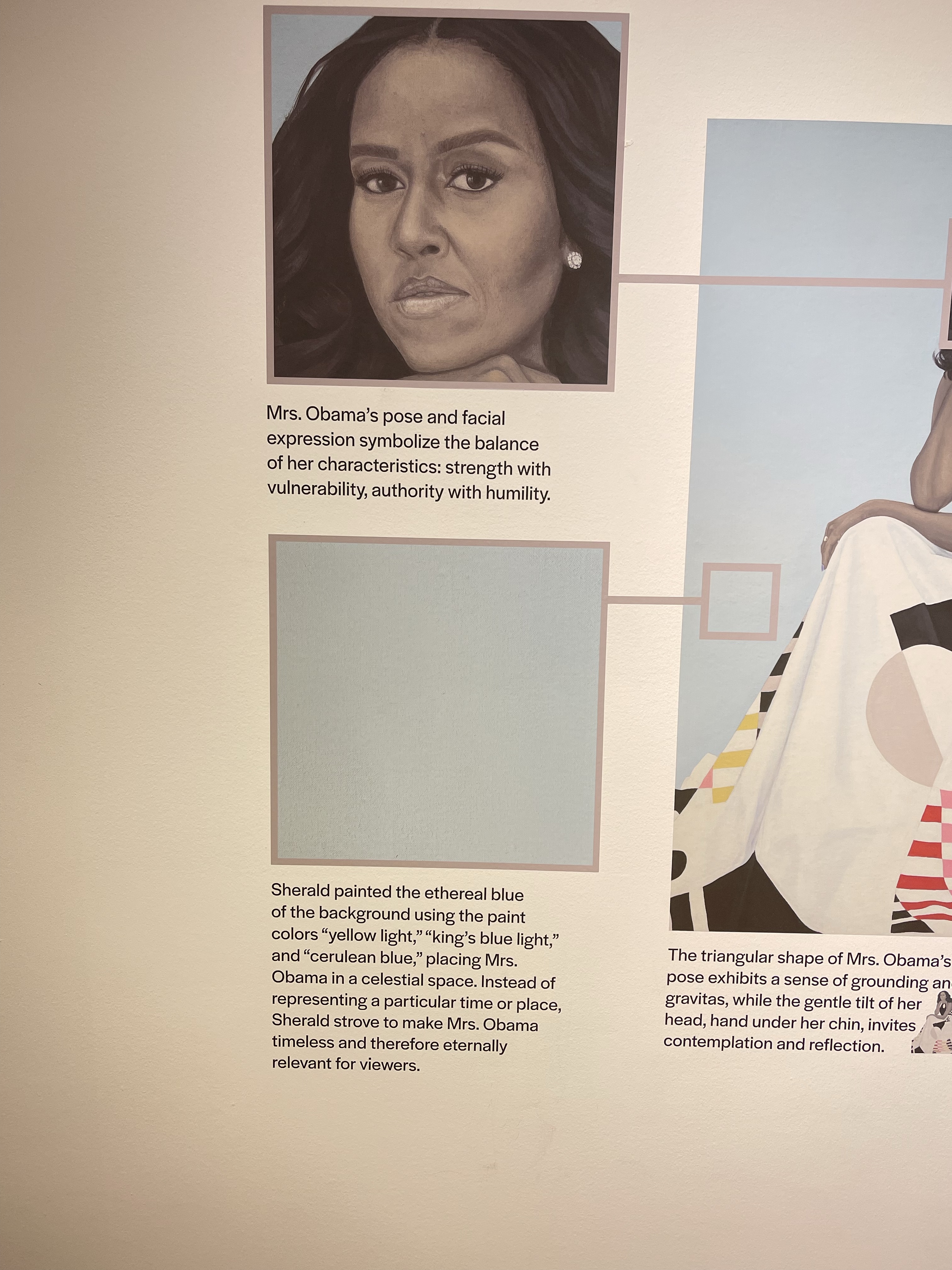 Overall, my experience with visiting the Obama Portraits tour at the High Museum was simply amazing. It was a small but impactful exhibit. I read each word displayed at the exhibit and was in awe of the magnificent of the commissioned artists. I celebrate Amy Sherald And Kehinde Wiley for creating these portraits that will be forever seen in perpetuity.